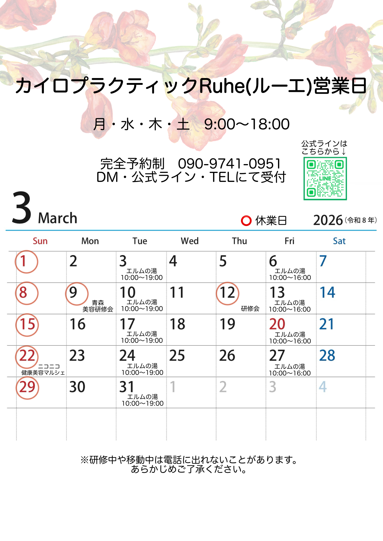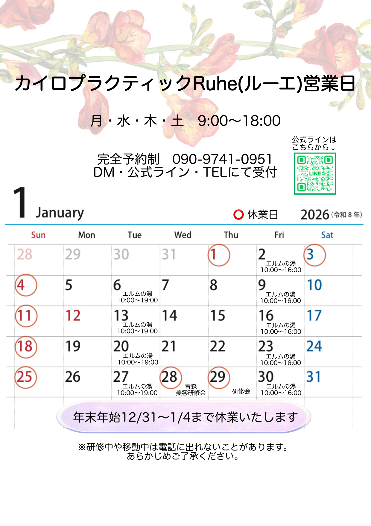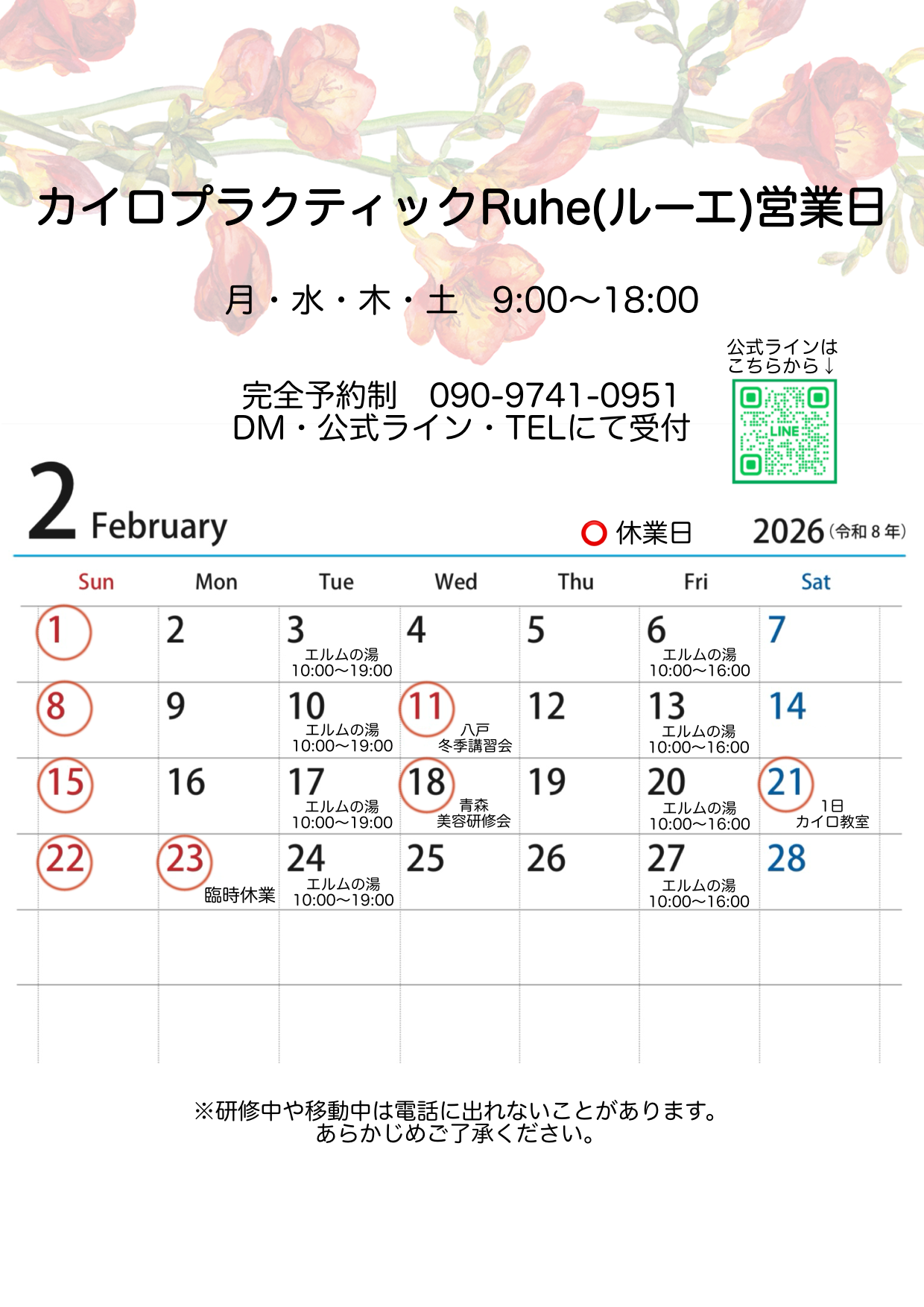 1月は5日から営業します。 寒くなって身体がガチガチになっていませんか? 卒業式や入学式、新生活のために身体を変えるなら、今からです! リバウンドのないダイエット、体型維持、姿勢改善には カイロプラクティックです♪ 予約 […] -