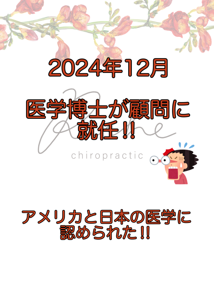 すごいところに認められた‼︎ 投稿日 2025年2月13日 著者 IzumiNozomi カテゴリー 新着情報 アメリカ最大のカイロプラクティック団体と提携しました。アメリカのカイロは、医学系の大学を卒業しなければいけません。そのため、カイロドクター、医師と呼ばれています。 日本ではまだ認められていないため、民間療法の位置付けとなったいます。それが‼︎アメリカの団体に認められました‼︎ さらに、日本の医師まで顧問に就任となれば、日本で認められる日が来るかもしれません‼︎ 医学上では異常がないと言われても、痛みや不調がある方をたくさんみてきました。 そんな方を救う、最後の砦でありたいと思います。