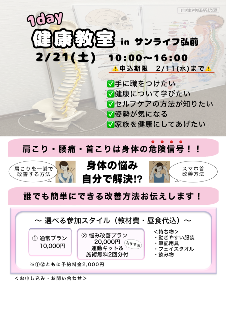 2月、健康教室開催します。